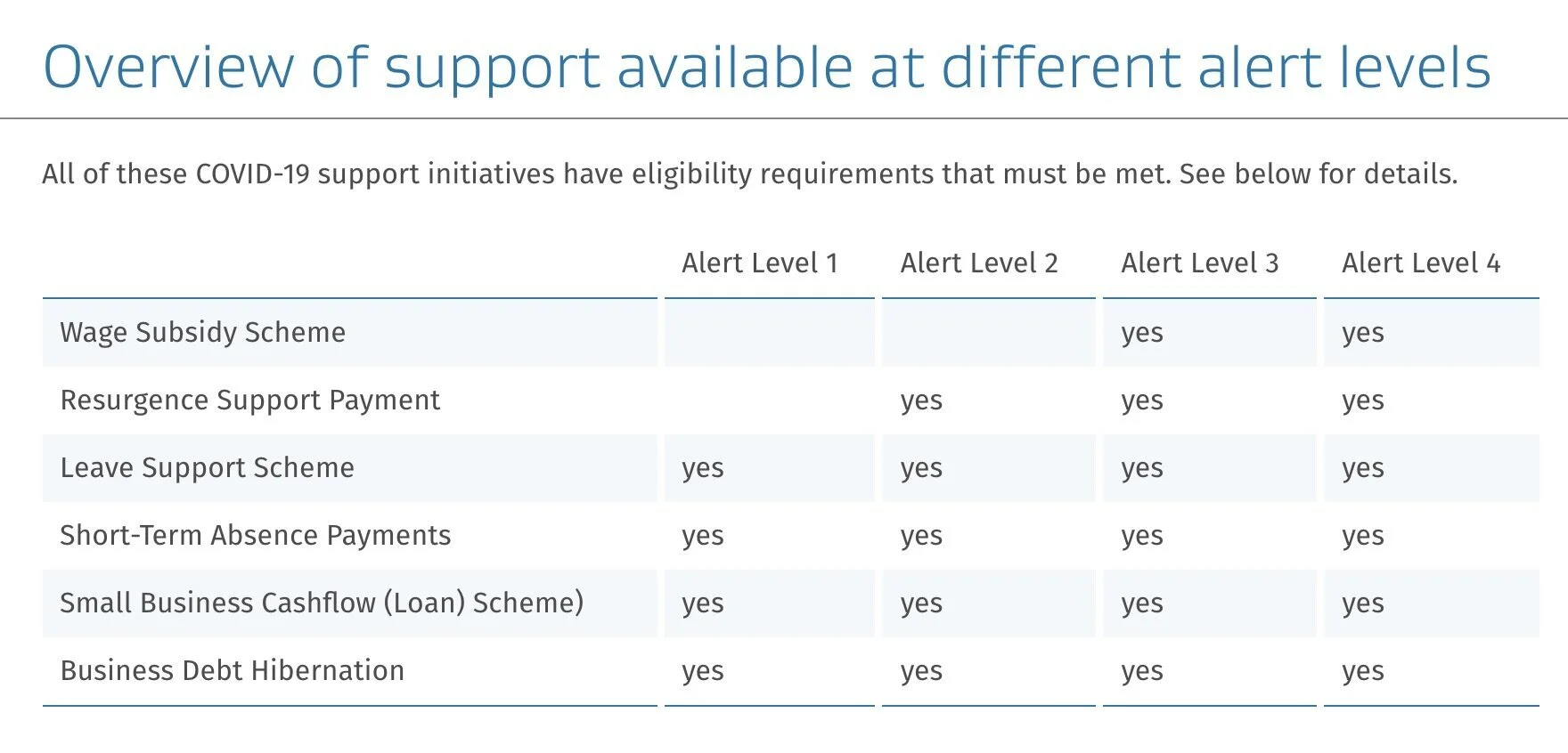 There's a range of Government financial support you might be eligible to apply for as a result of the COVID-19 alert level rise, including: